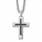 Stainless Steel Brushed & Polished CZ Cross Necklace